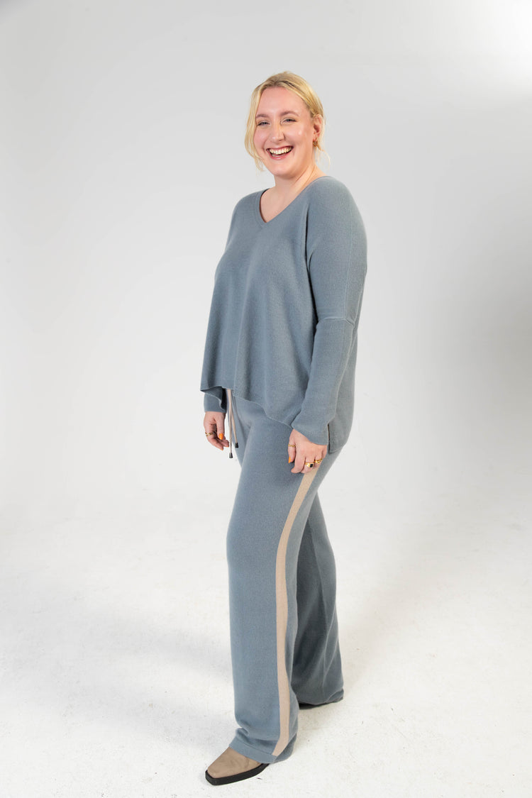 ANOUK - Cashmere Straight Fit Hose mit Seitenstreifen – Schiefergrau
